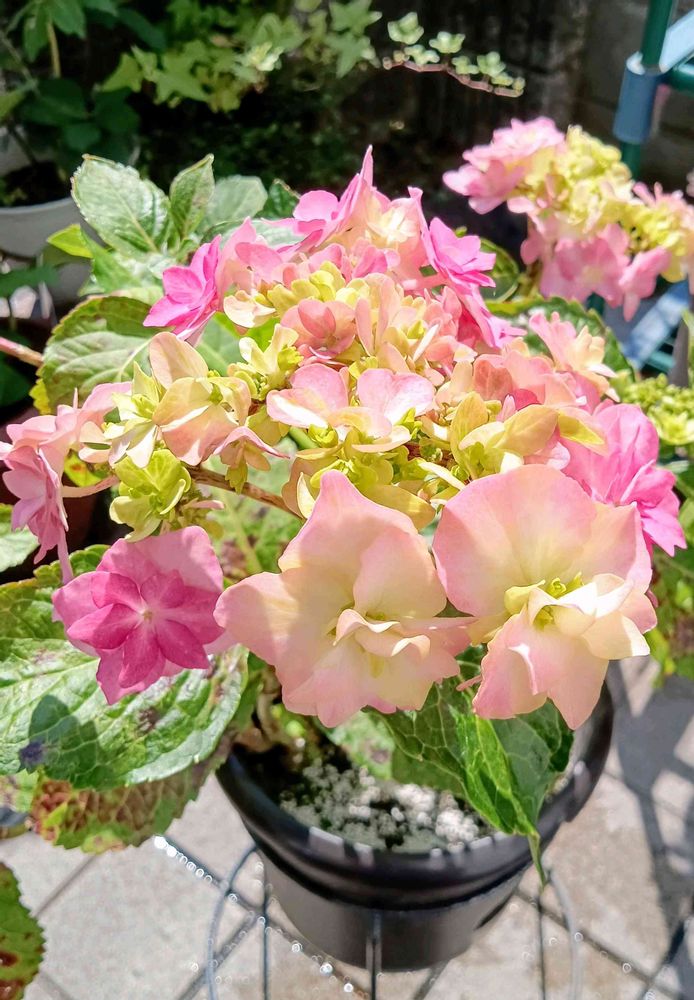 ピンクの色合いがとても可愛らしい紫陽花です😊