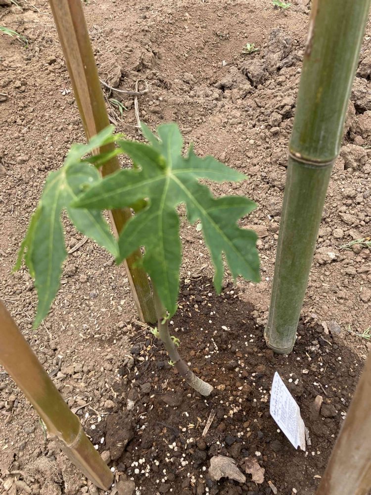 あの小さな苗木でパパイヤ実るのかなぁ!