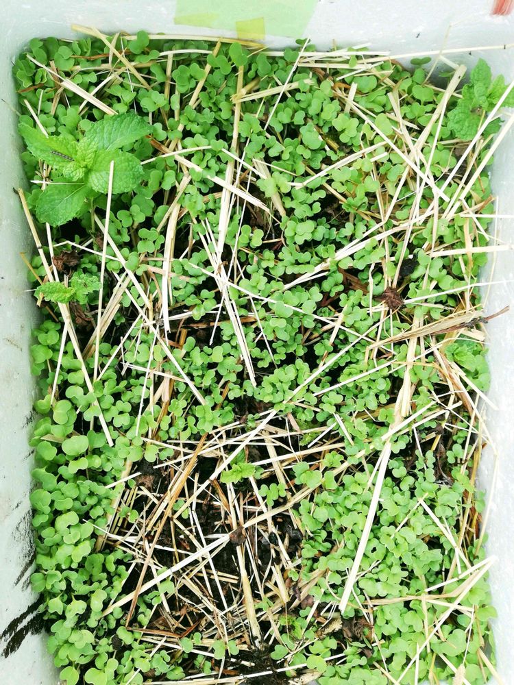 防虫作用には 混作のミントや 薄めた 木酢スプレー、 食害を防ぐために 飛騨高山 湯の花 をうっすら 葉っぱに撒いておきます。