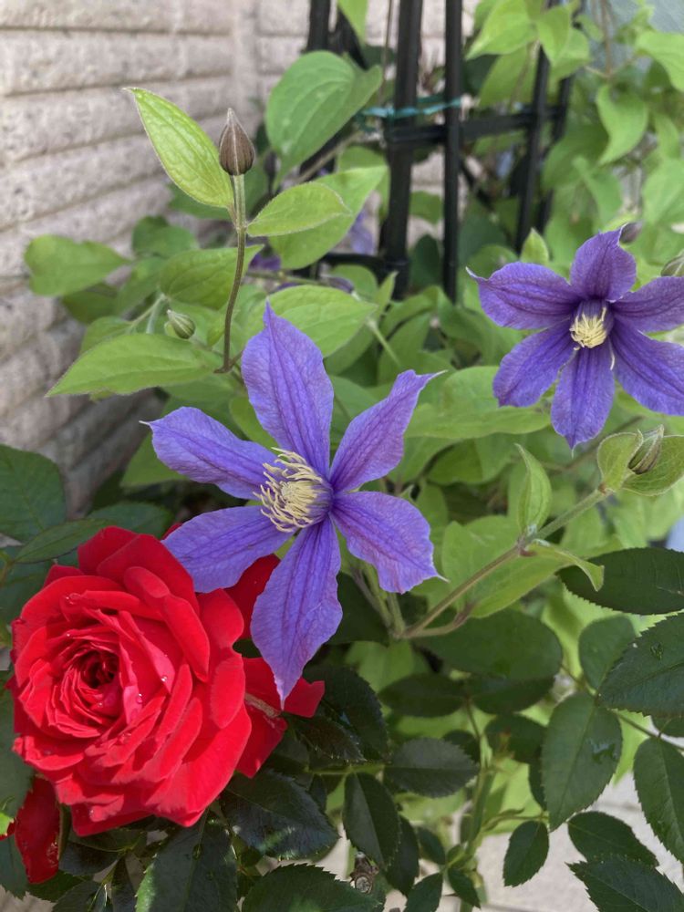クレマチスのクールビューティな感じが涼し気に見えるけど