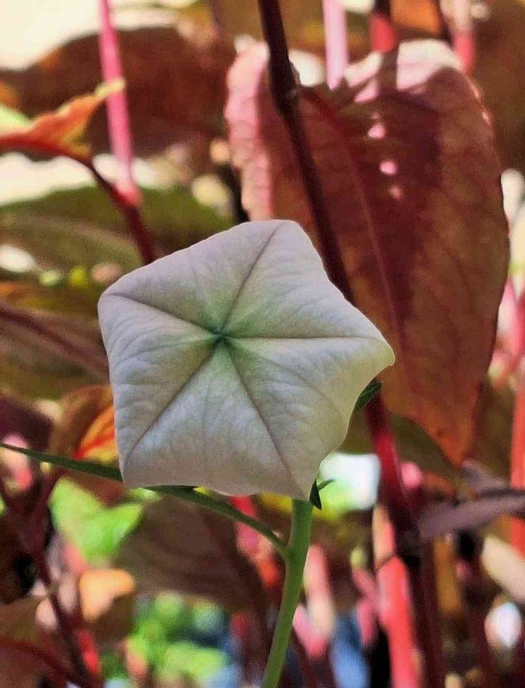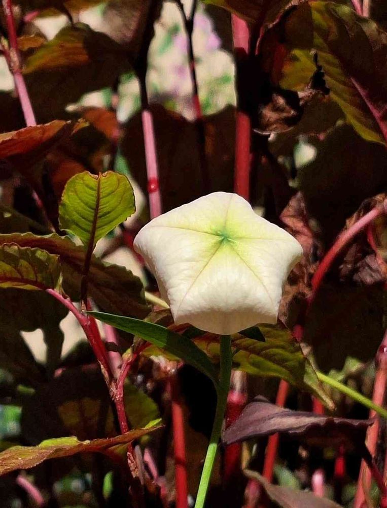今朝、ペルシカリアレッドドラゴンが生い茂った中に、1輪だけ蕾を持った桔梗を見つけました❇️