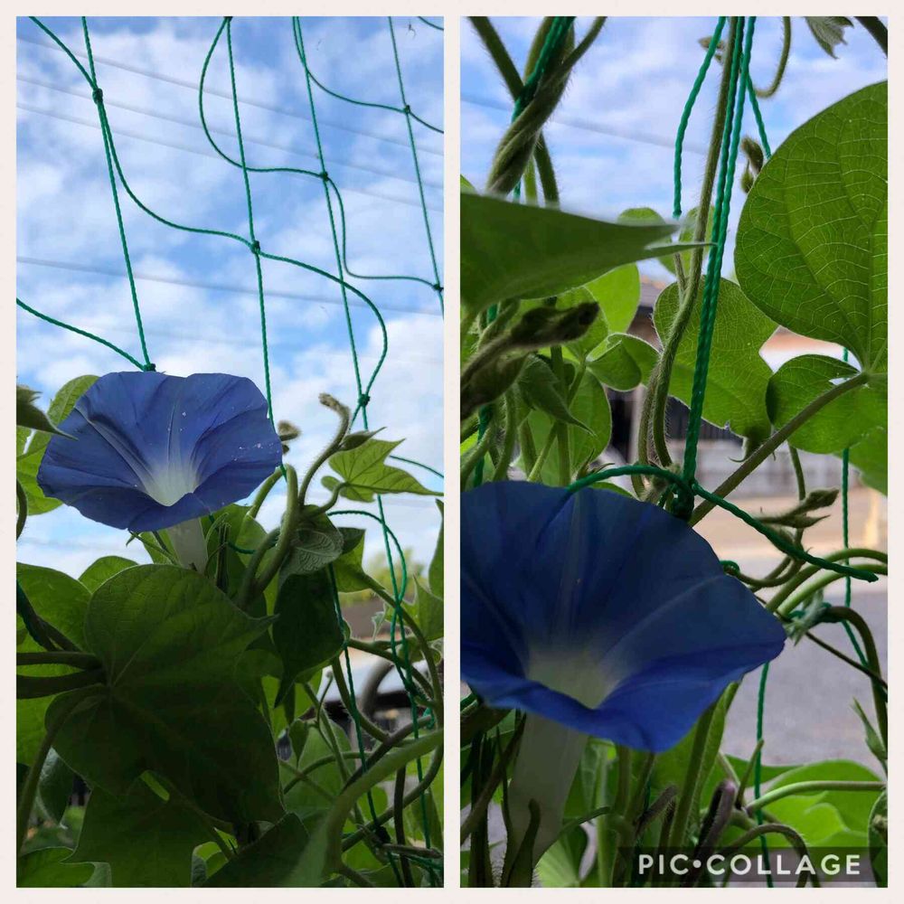 待っていた薄青色の朝顔が咲きました