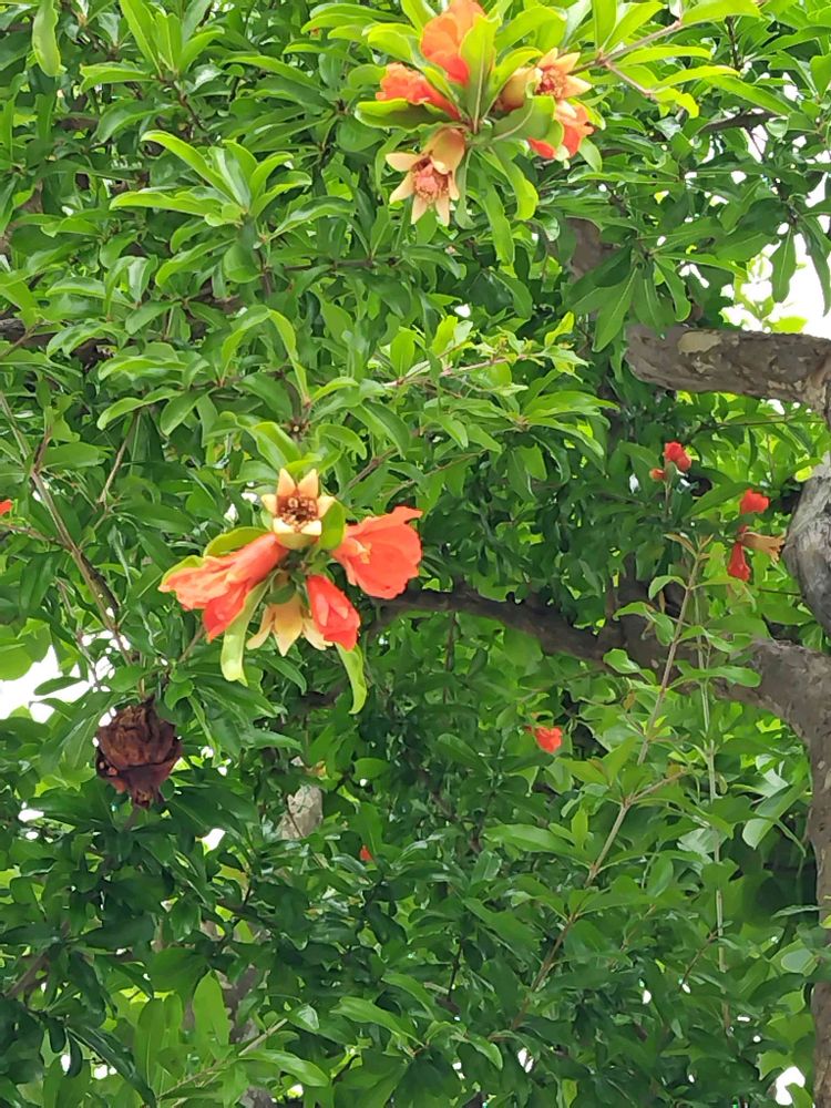 ご近所のザクロの花さいてます オレンジ色の可愛い花です 実は毎年頂いてザクロ酒に♪₍₍ ٩( *ˊ ᵕ ˋ*)و ⁾⁾♪