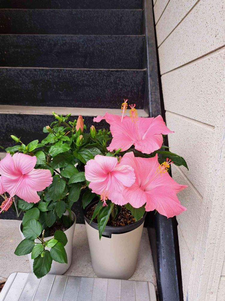 えっと、サニーシティシリーズのハイビスカスピンクの鉢の向きを変えてみた感じ・・・・。同じピンクでも色の濃さが全然違う感じ。 ピンクのハイビスカスがめっちゃ好きって程にも無いんだけど。