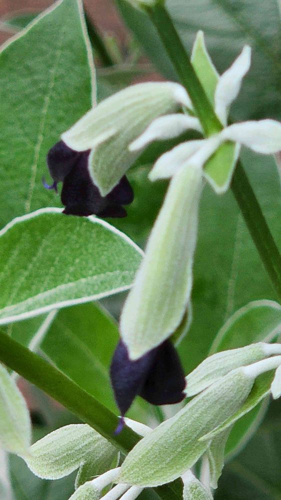 朝の散歩中に薄い産毛の生えたような緑色の中から黒い花が見えます。