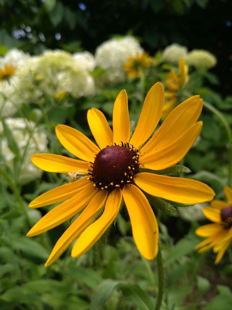 くるみボタンの様な花芯が特徴のルドベキア🤗