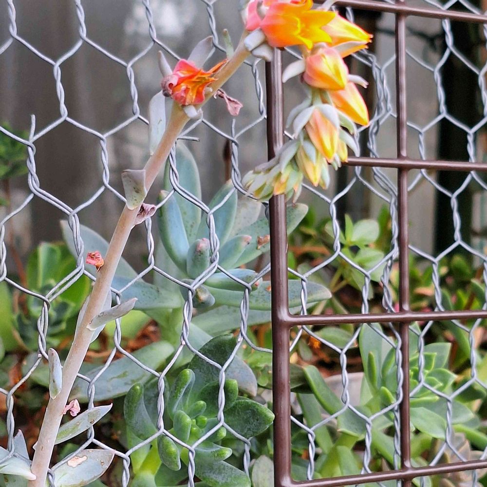 鳥避けの金網からニョキって出てきて咲いている花も可愛い💓