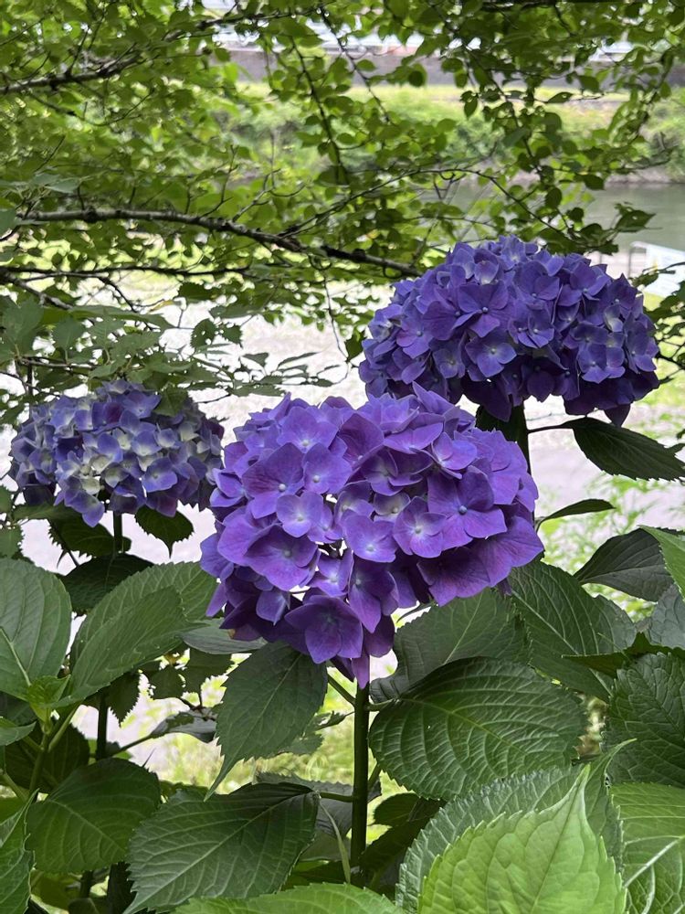 ⑤公園の展望台の階段に咲く紫の紫陽花です