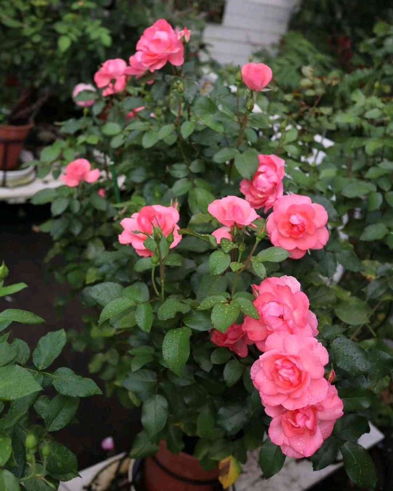 10号鉢のジャルダンドゥフランスの2番花が咲き進んで来ました。ものすごい蕾みの量で、これからが楽しみです(っ ॑꒳ ॑c)。