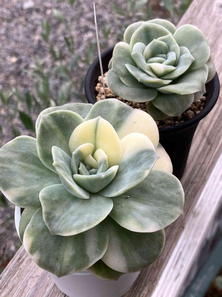 奥の子の葉挿しがいくつか出たんですけど斑入りとわかるんですよ⤴️期待しちゃいますよね😆でも大きい方の葉挿しが全然出なくて💦丼頑張りたいですね😍
