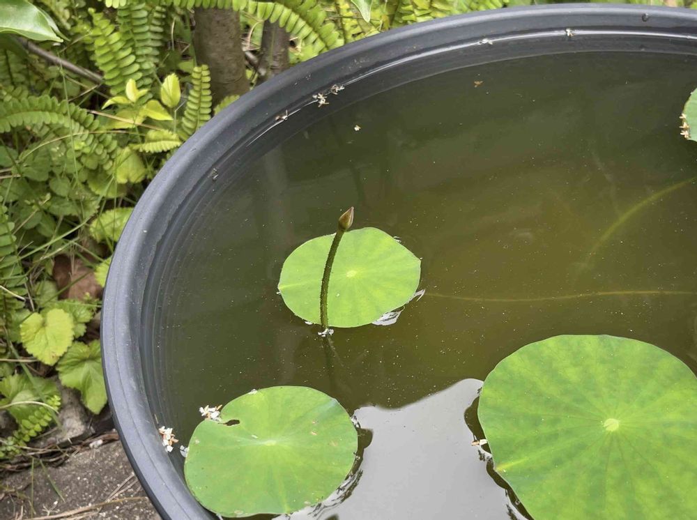 ハス(小舞妃)です。いつのまにか蕾が出てきて伸びていました!