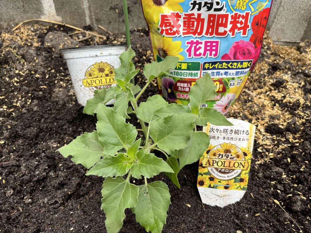 モニターキャンペーンのヒマワリ『アポロン』をおばあちゃんちの畑の片隅に植えたよ🌻