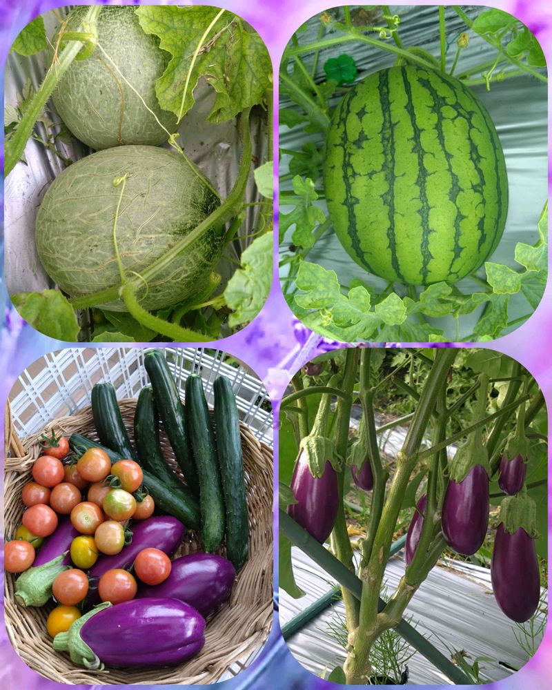 ナス もきゅうりも立派な形 娘さん喜んじゃいますね😍 メロンが上手にできていてすごいです