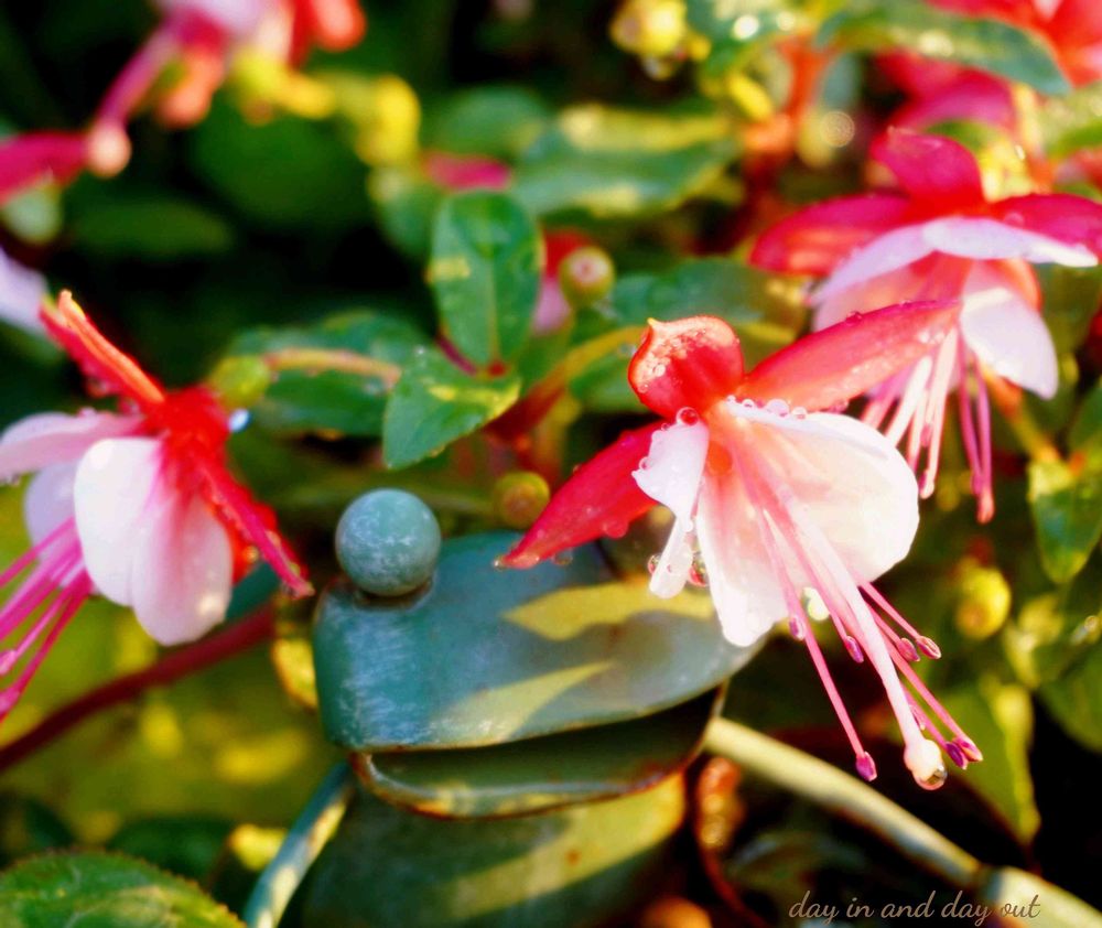 綺麗なフクシアに囲まれて、カエルちゃんも乙女に見える🐸❤️😆