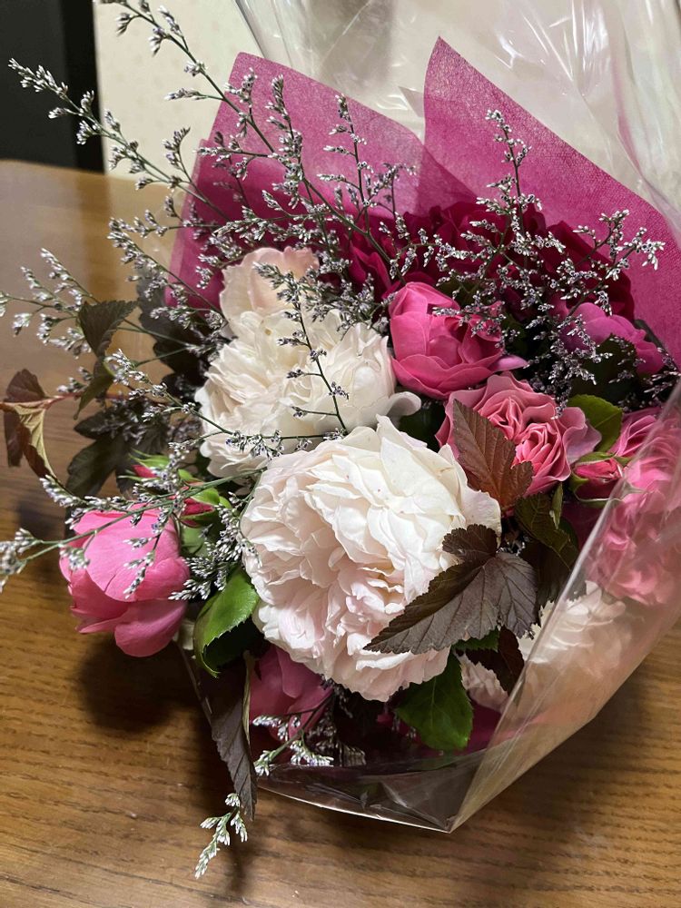 ほんと‼️嬉しい心温まる1日でした〜🥰いただいたバラの花束玄関に飾って思い出してます😃