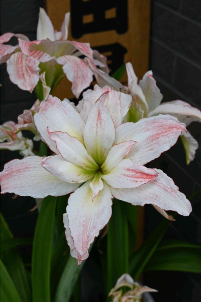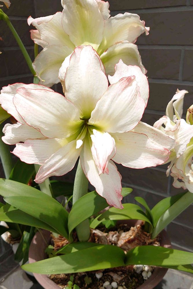 白系のアマリリス爽やかですね🌿🤍🧡🤍🌿
