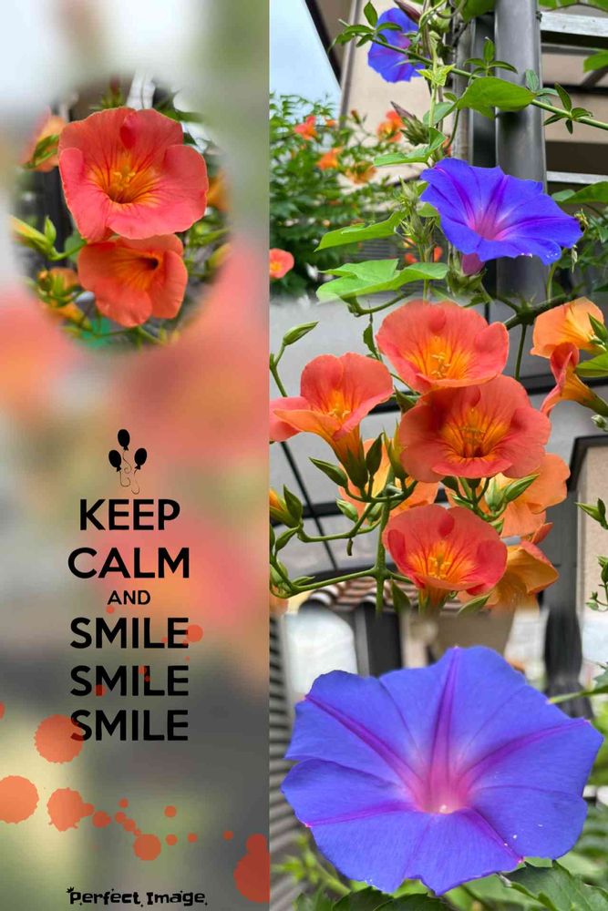 オーシャンブルーの吸い込まれるような青と、ノウゼンカズラの元気色で
