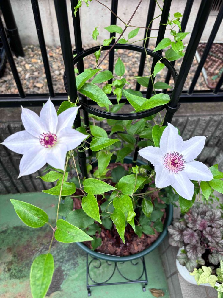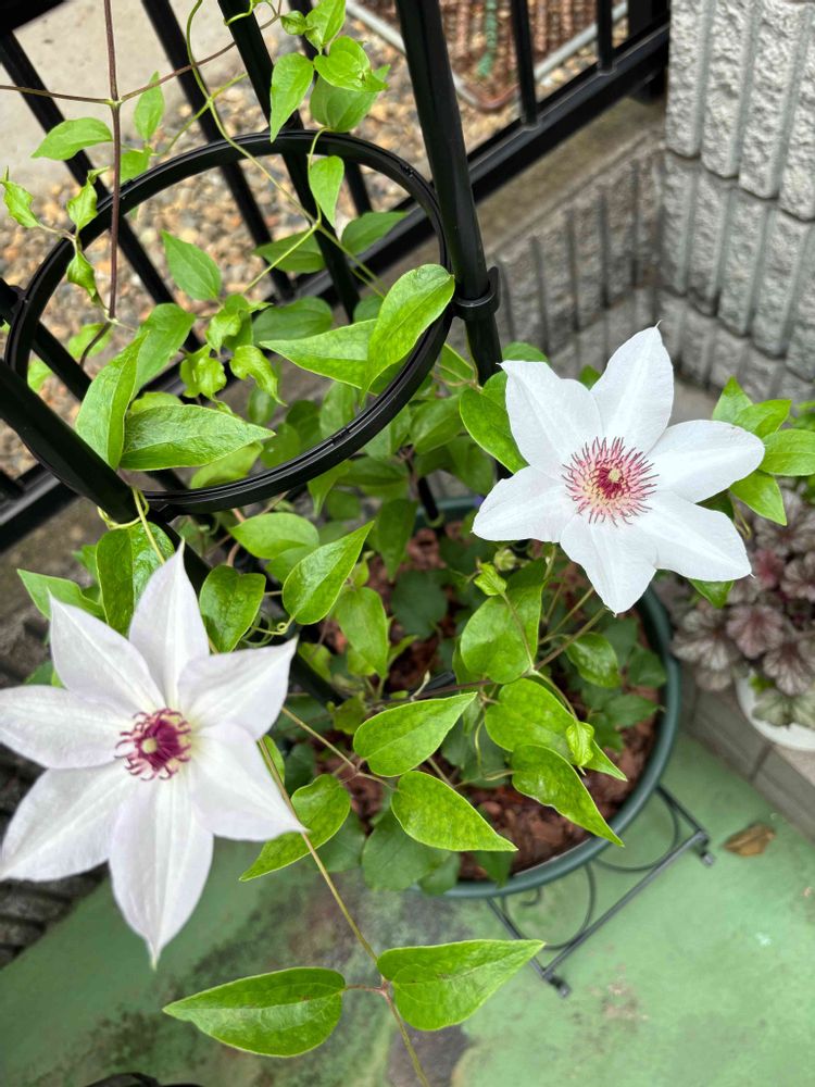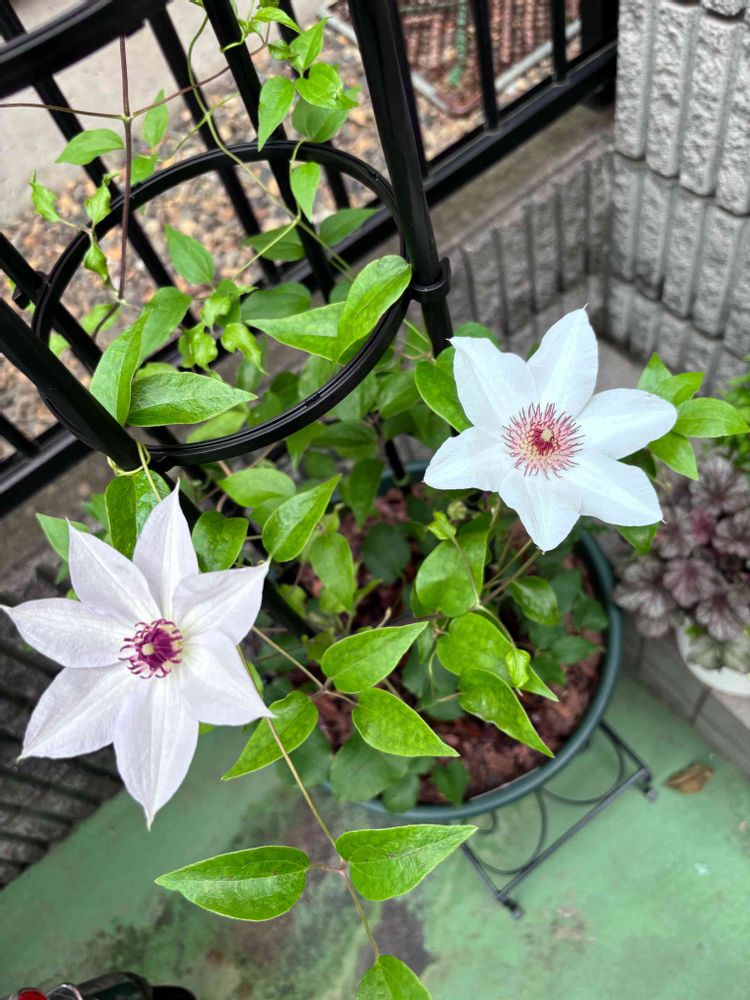 今朝クレマチス2輪目🌸🌸咲いていました。綺麗だ〜
