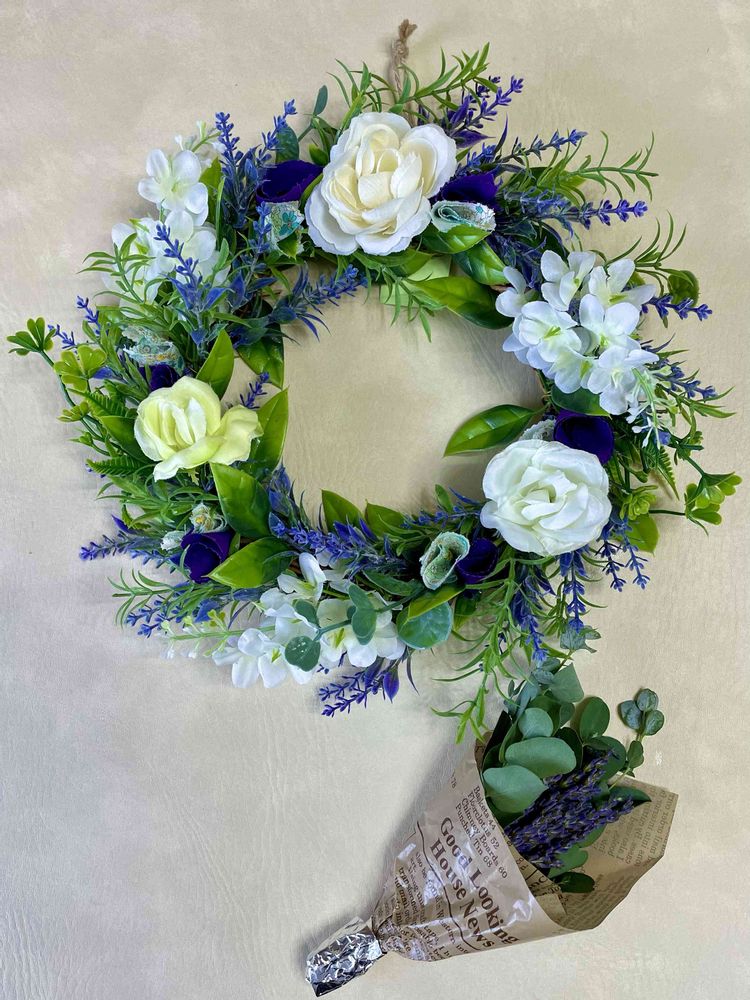 1枚目は造花です🪻が5枚目は布リースです💜🩵💙