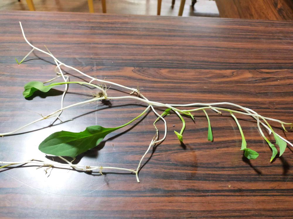 乾燥したハウスの中に生えている雑草です。葉っぱがぴょんぴょん出ていて、根っこで繋がっていました