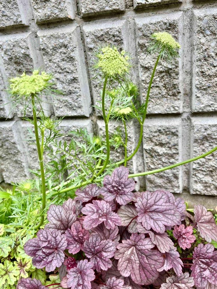 グングン伸びて、頭が重たくなって、お辞儀してヒューケラちゃんに被さるから✂️したよ。