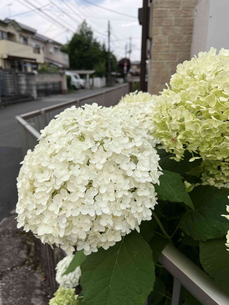 散歩咲いていた大きな白いアナベルのお花です😆🤍🤍✨