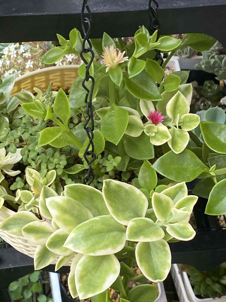 今は、写真の多肉の気持ちさんにいただいたカット苗からの子と、養生中の子(量は写真の子くらい)をハンキングで鹿🦌被害に遭わないようにしていますが、もし、見つかって食べられてしまったら、その時はよろしくお願いします🙇