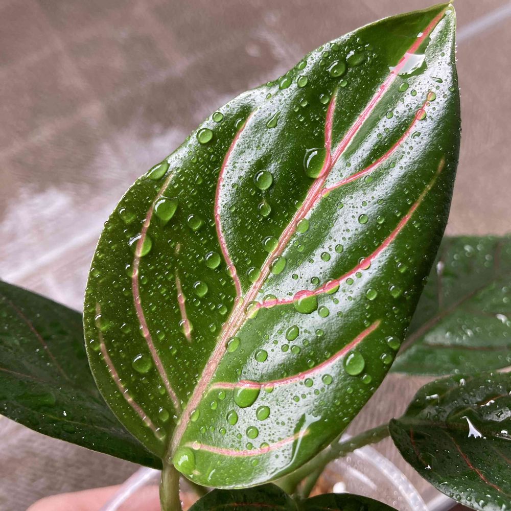 新芽が開くと、朱色の葉脈が綺麗なアグラオネマ・ロタンダム