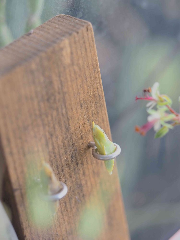 そんな時は蛹ポケット(かまぼこの板にヒートンをねじ込んだだけ)が大活躍。アゲハ用なので少し大きいけどうまく引っかかった🦋