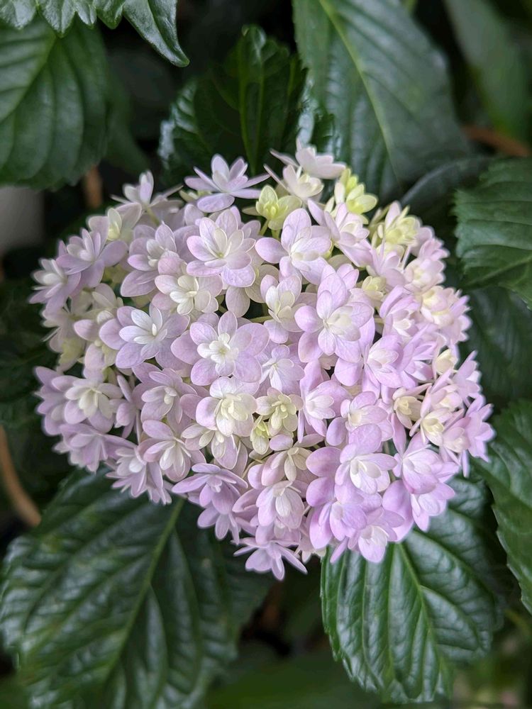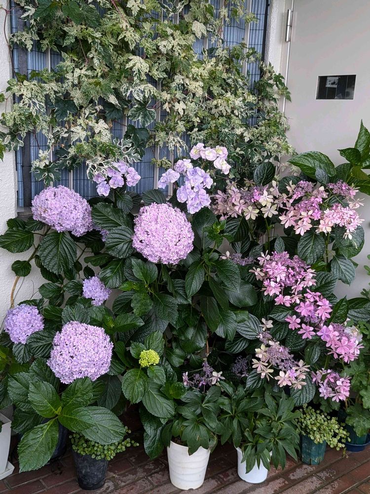 ⭐まん丸に咲くてまりてまりはphによってブルーやピンクとかなり色が変わります💕今年は中間なのかいろんな色で咲いてます👌