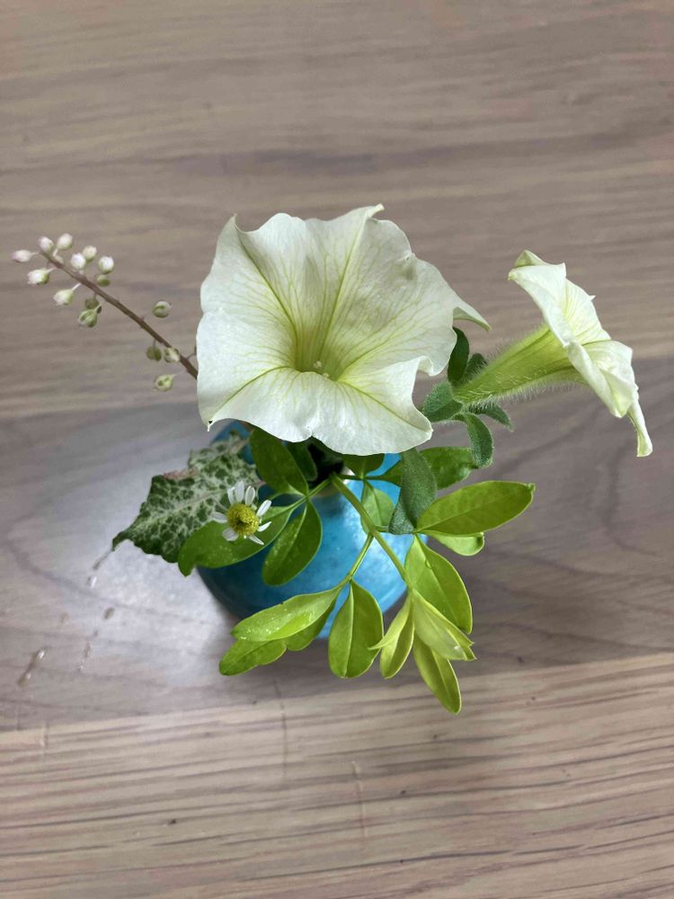 白いペチュニアとジュズサンゴの花その他諸々です。白く爽やかにしたくて。