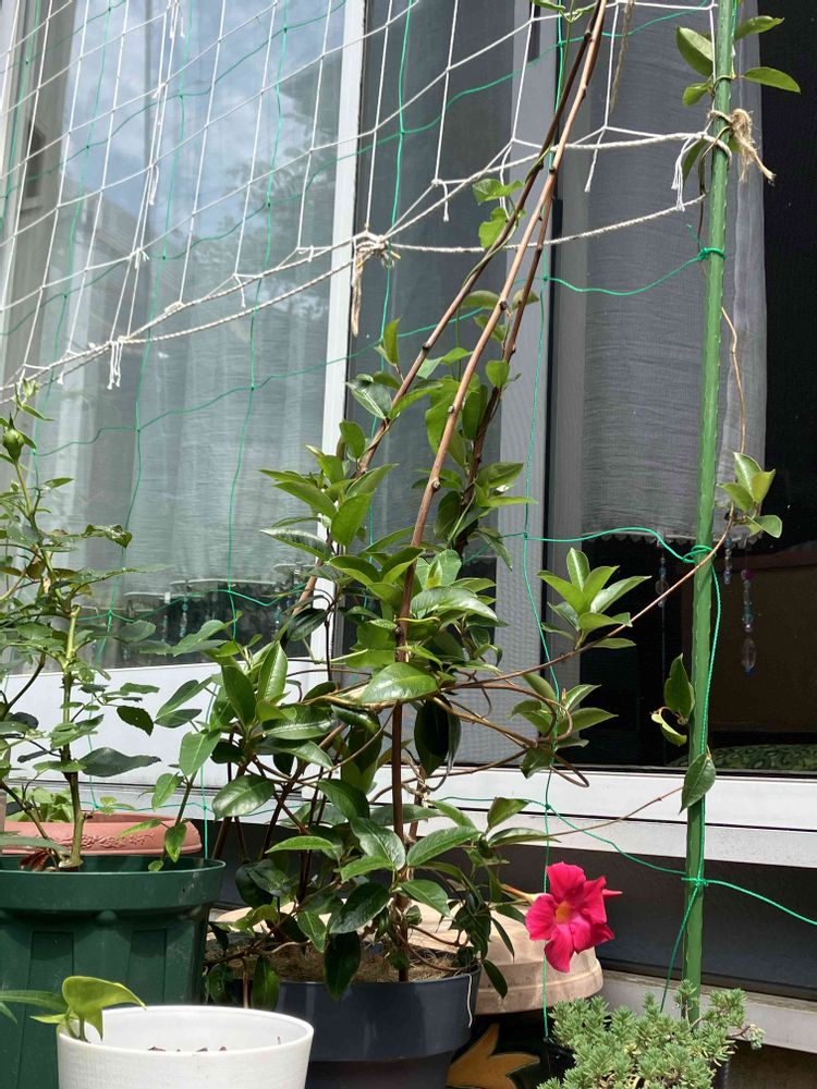 朝顔のネットに一緒に絡ませてグリーンカーテン目指してます🥰
