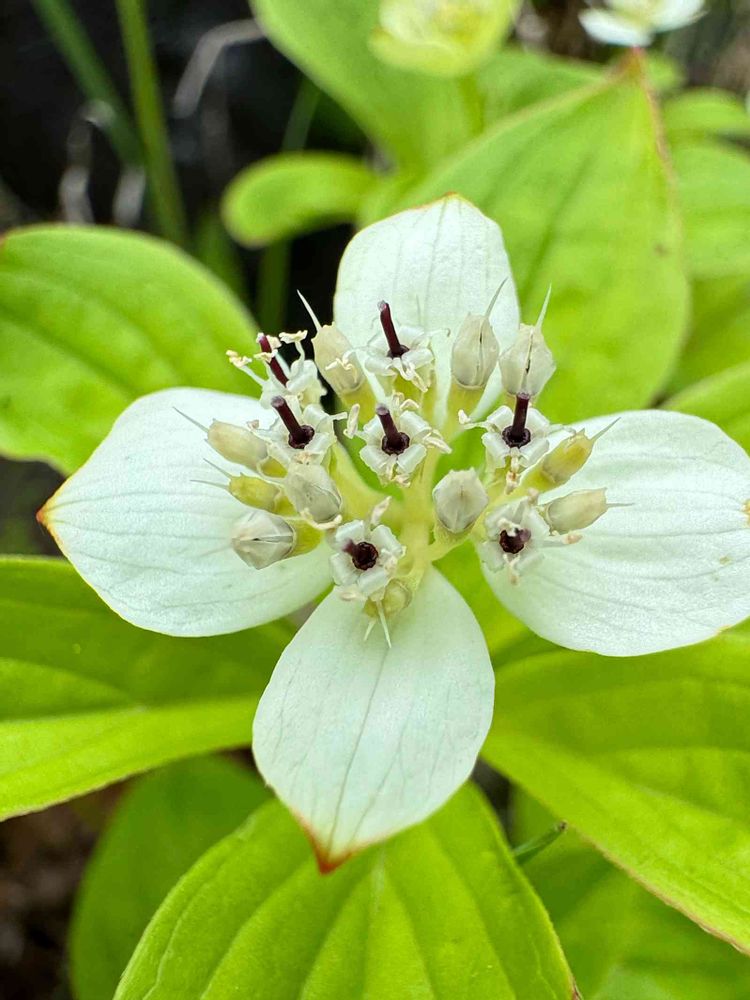 ③ 4枚の花びらのように見えるのは苞でまん中に