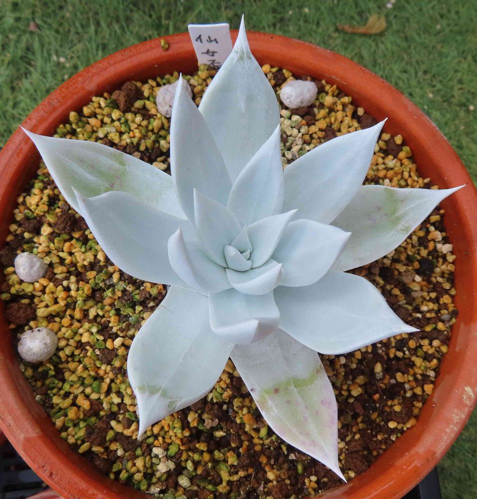 一昨年入手した二代目仙女盃。うちに来た当初は葉が細長かったけど,いつしか太く短くなってきた。でも,立派な姿になるにはまだまだかかりそう。