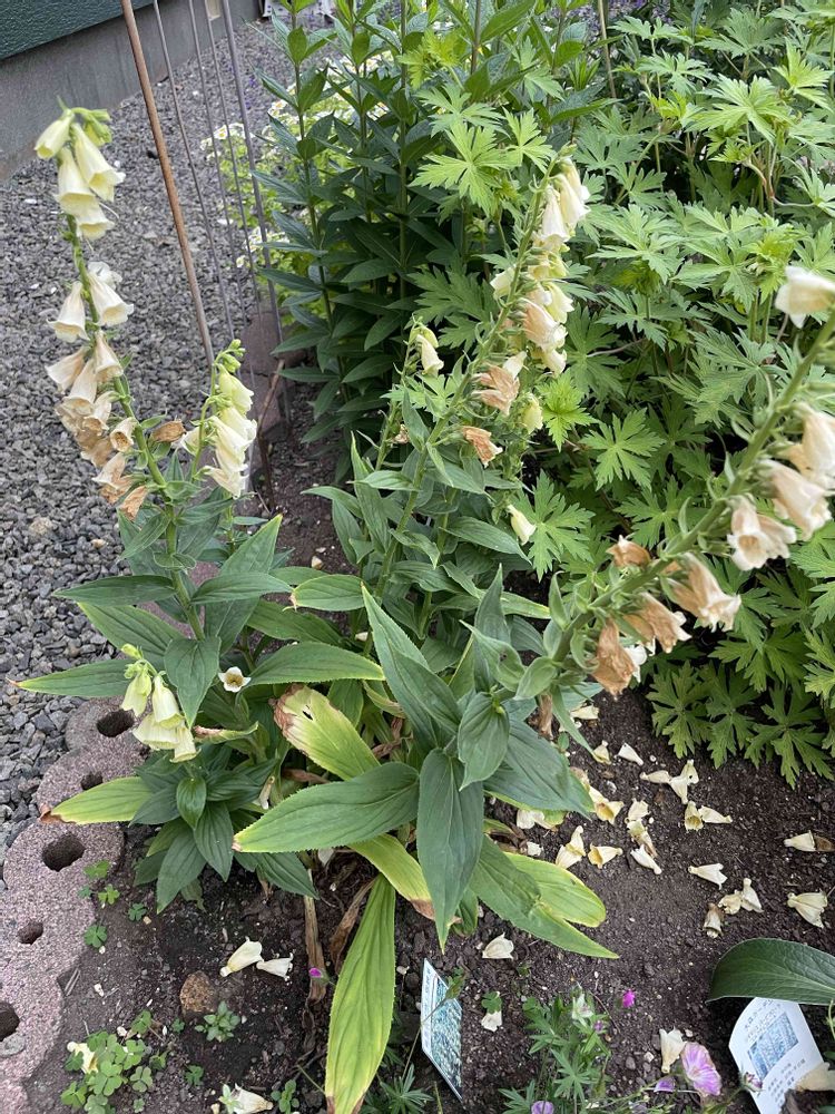 上品なクリーム色が素敵だったジギタリス、1番花が終わりかけです
