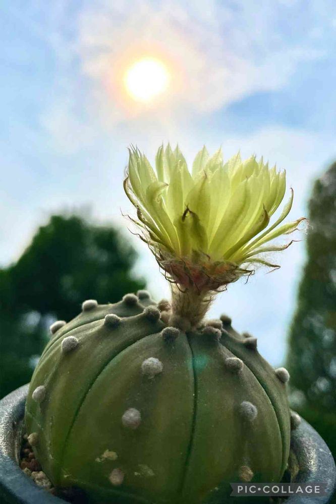 1枚目、太陽の方に向かって写してみたんですよ😊お空がやはり、梅雨空なんですよね。はっきりとしないから、サボテンも開きがイマイチなのかもしれないですよね。でも、明日も咲くならいいっか😂ですね。
