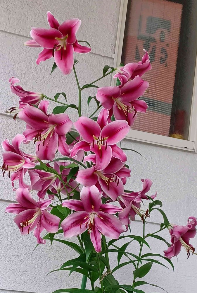 このオリエンタルリリーは2本の茎かな〜❓3本目も細い茎見えてるし〜他所んちの玄関横に置かれてるからゆっくり見られなくて〜😅😁🎶