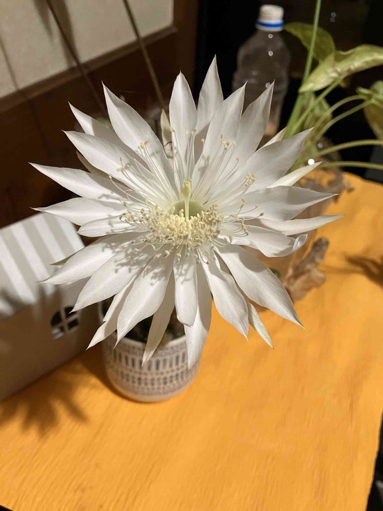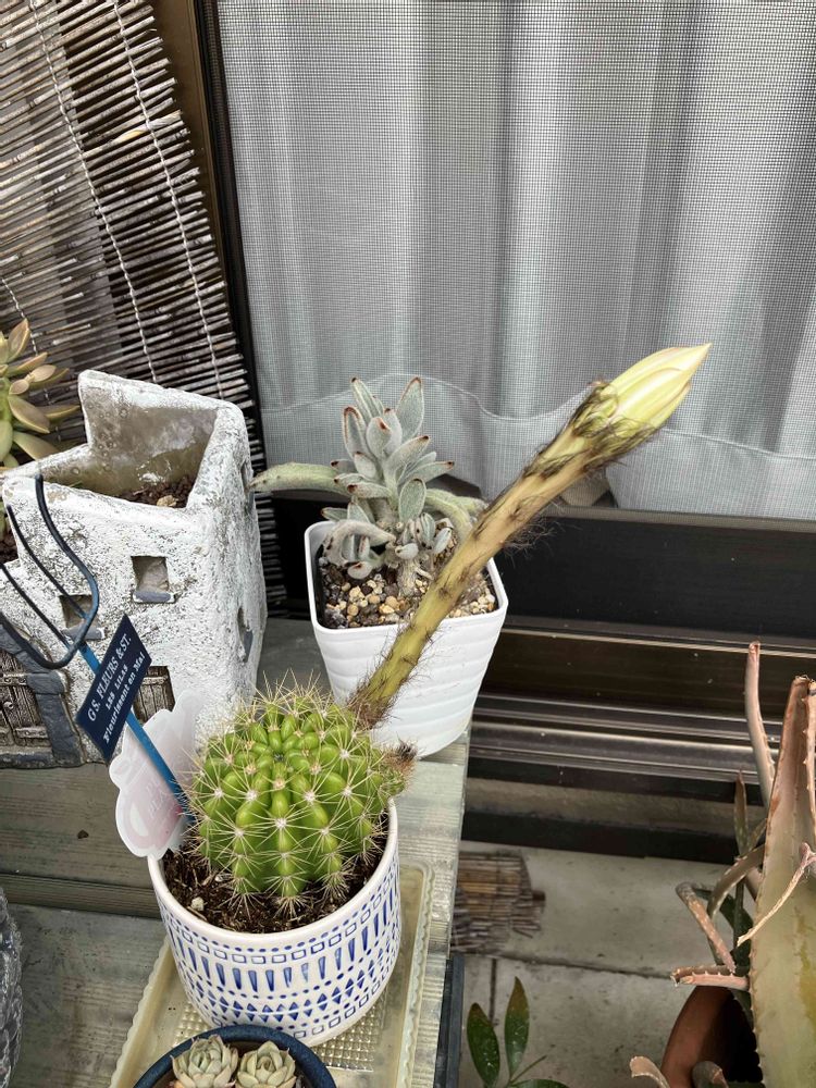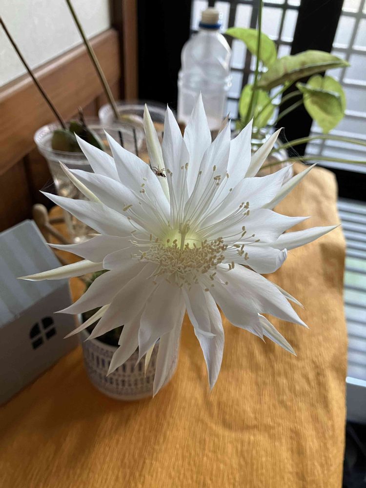 おはようございます。サボテン 夜開き始めました。まだ朝も綺麗に咲いています。