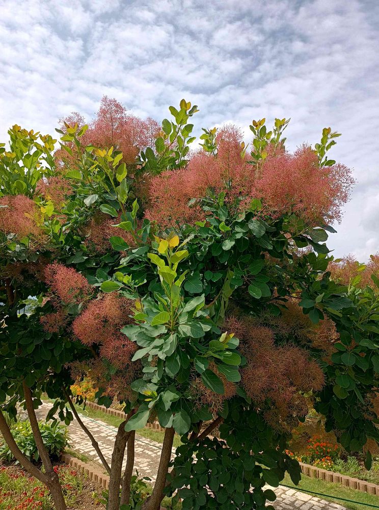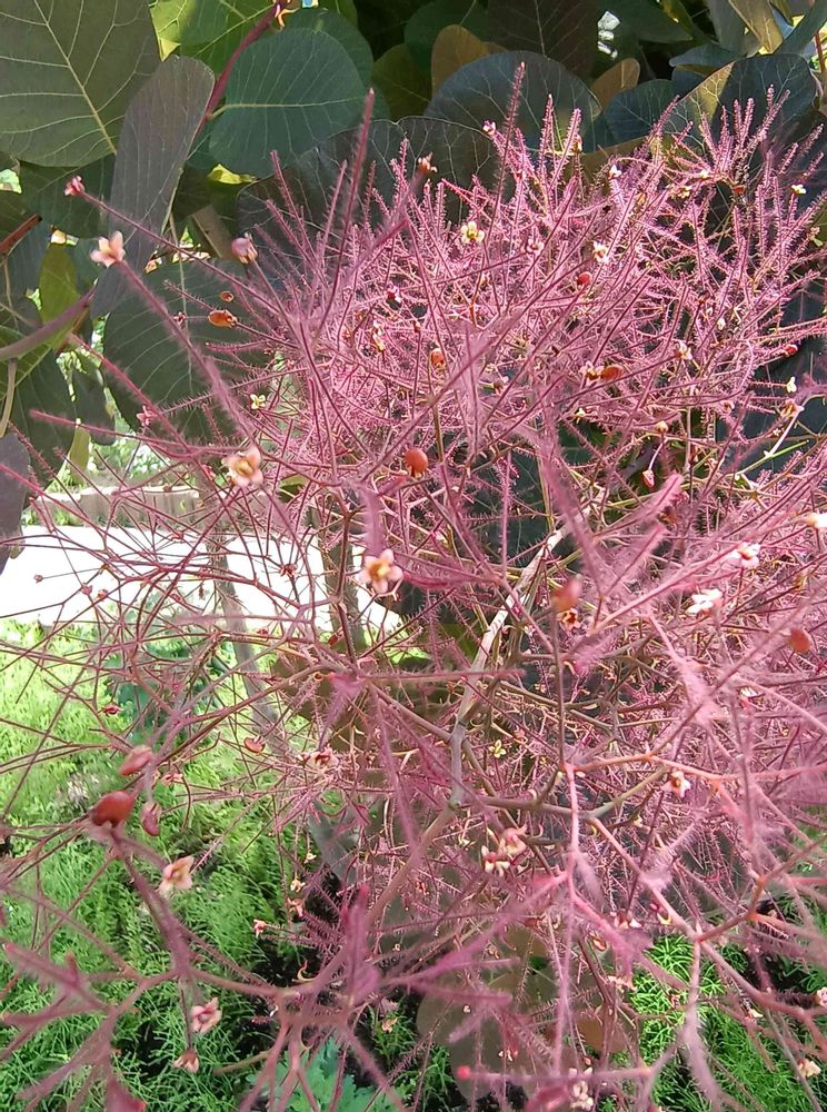 スモークツリー、ここでよく見るんだけどモフモフの中にお花が咲いてるのは初めて見ました。👀