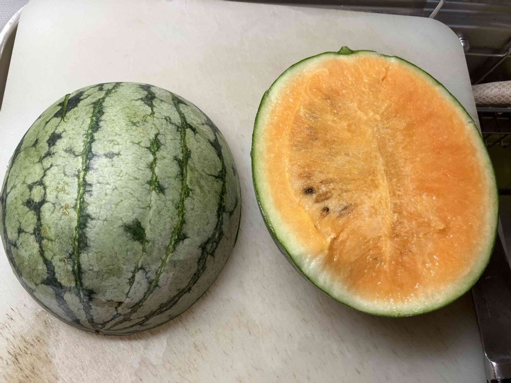 黄色いスイカは同じ糖度でも赤よりあっさりした感じがしました。オレンジはほとんど赤に近い感じですよ😋 まあ甘ければ🆗ですが・・