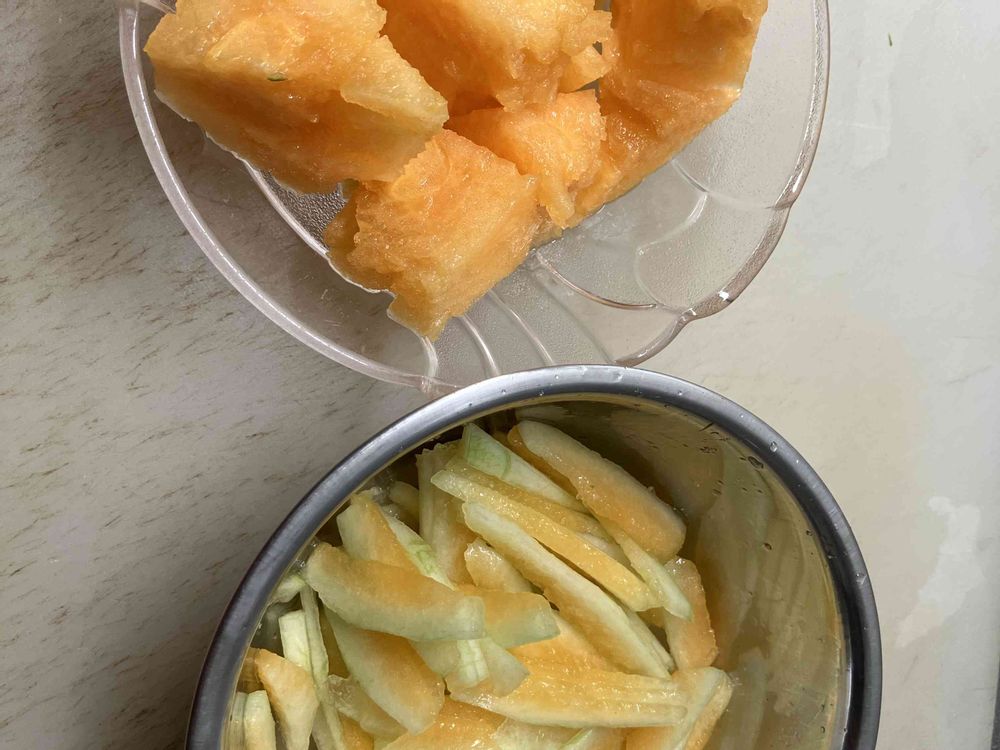 皮取って果肉だけだと、赤肉メロンみたいです🤭