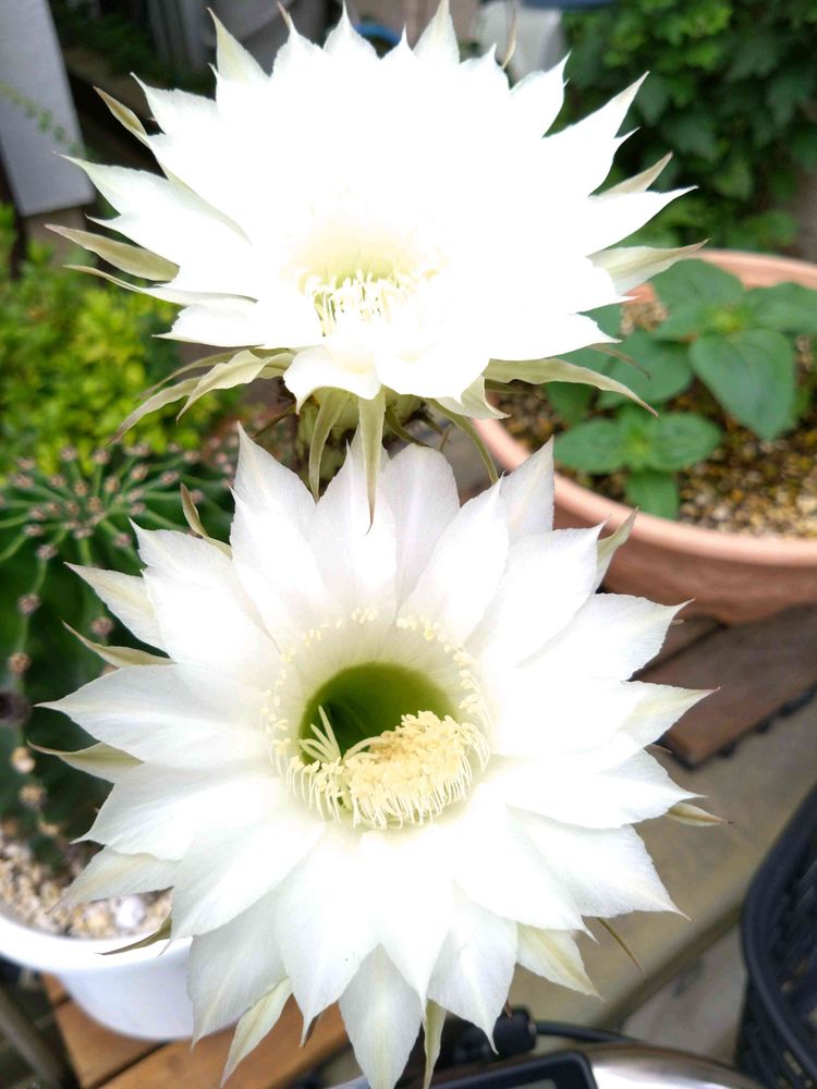 昨日のサボテンの蕾咲きました。今回は今年2回目の開花。次は3つ咲きそうです。