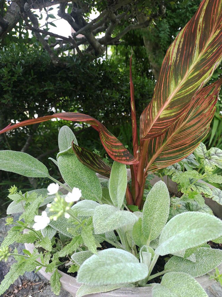 ラムズイヤーがグングンおおきくなり、カンナも葉っぱを増やしています!