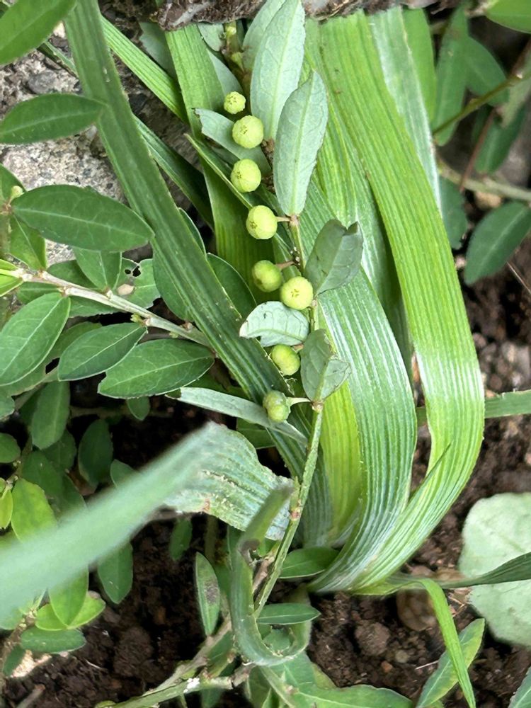 小さなみかん型の実は茎の裏側につくので、めくらないと実がなっているのが分からない。