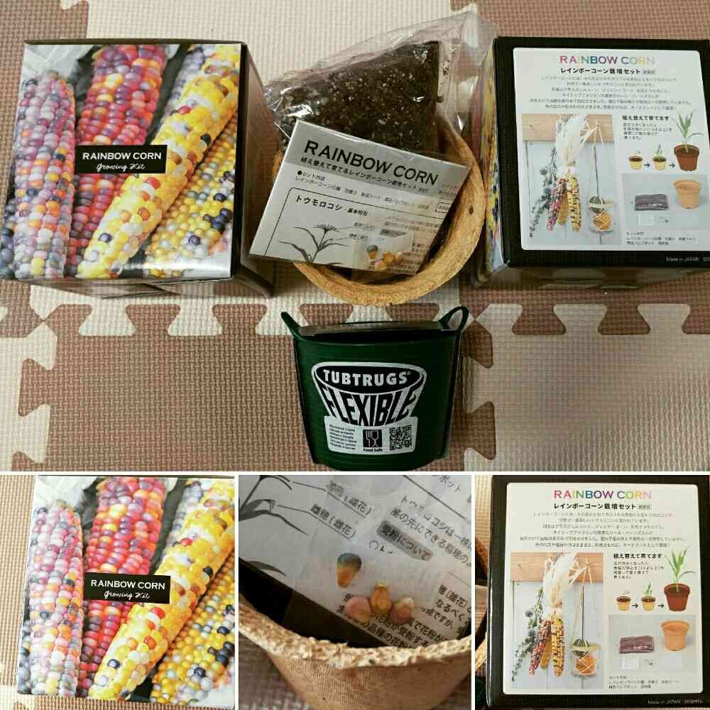 レインボーコーンの栽培キットが最寄りのショッピングモールにあったので2セットget!