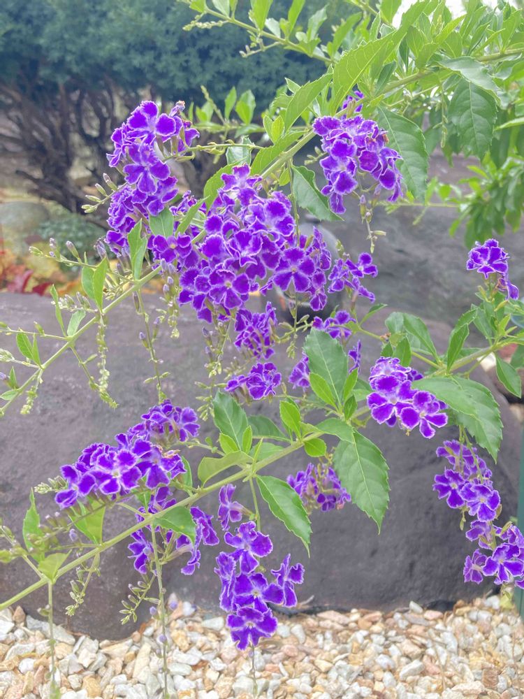 ①② 昨年、夏じゅうずっと咲いてくれたデュランタ宝塚💜今年も始まったよ😊