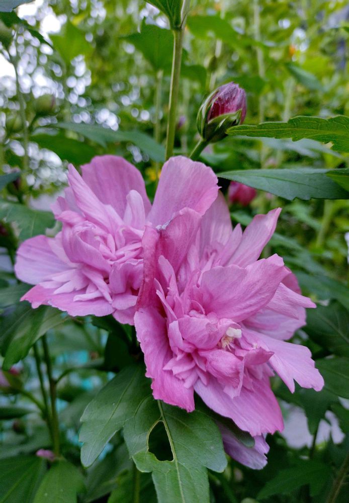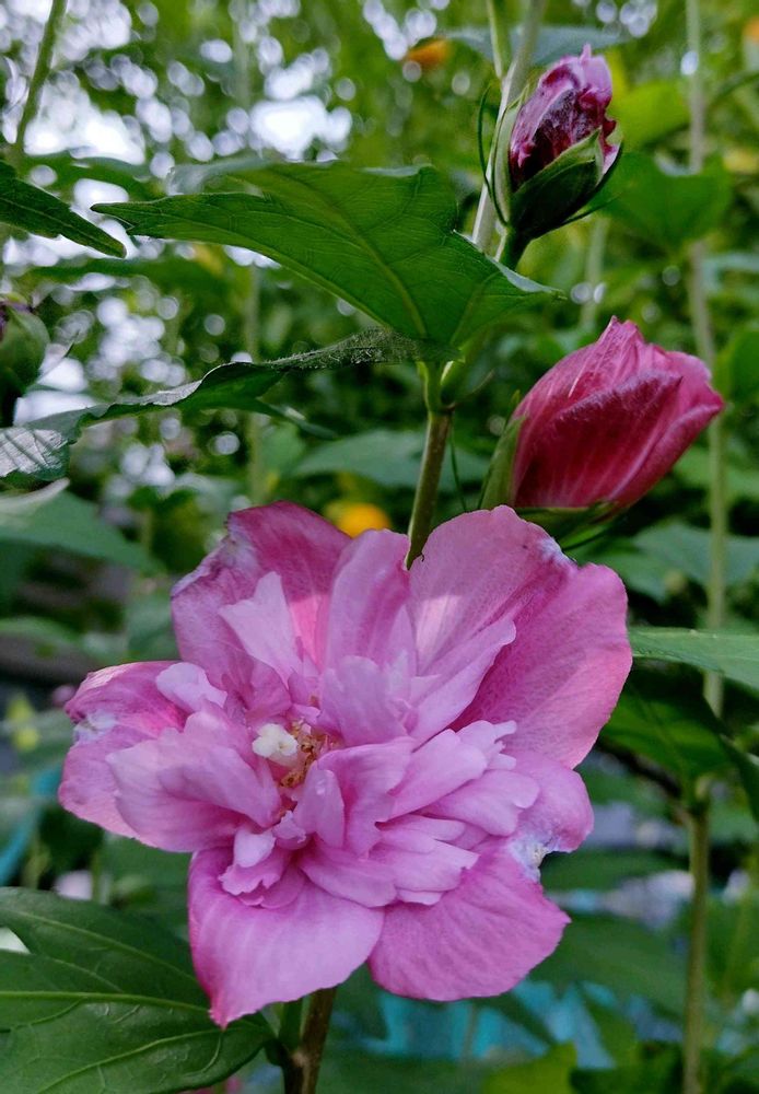 素敵な八重のピンクのムクゲチャン(⁎⁍̴̛ᴗ⁍̴̛⁎)デスネ!~♡
