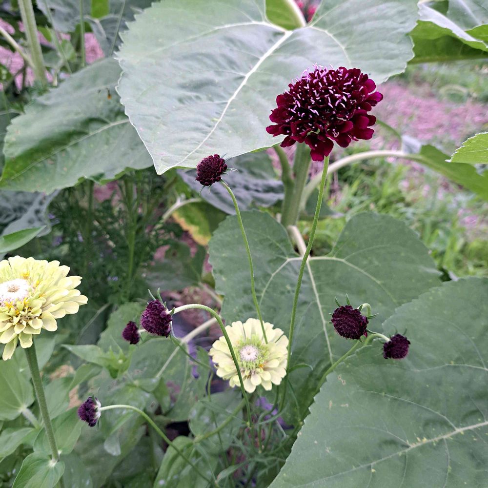 葉っぱの形が百日草ぽくないなぁ~と思っていたら、スカビオサでした😅
