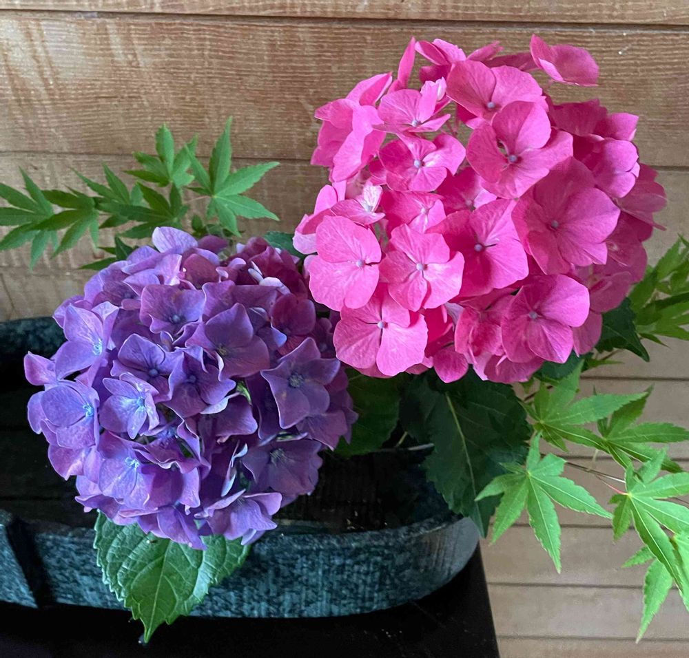 お花のお稽古の時の紫陽花をいつも挿し替えています♪