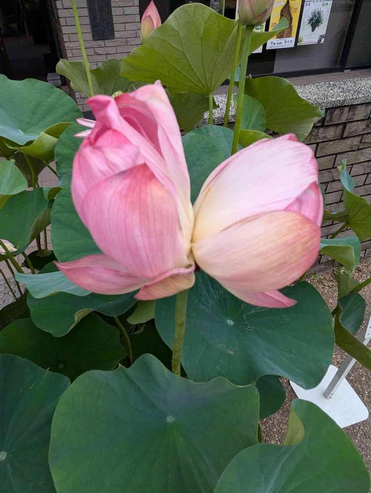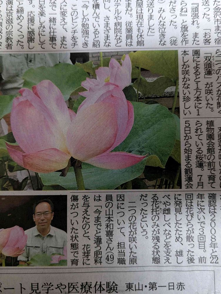 ①〜③今朝の京都新聞に載っていた、一つの茎から二つのハスが花開く「双頭蓮」を見てきました🤩✨